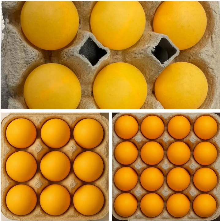 - "Vullen": Het bakje wordt gevuld met het gewenste product.